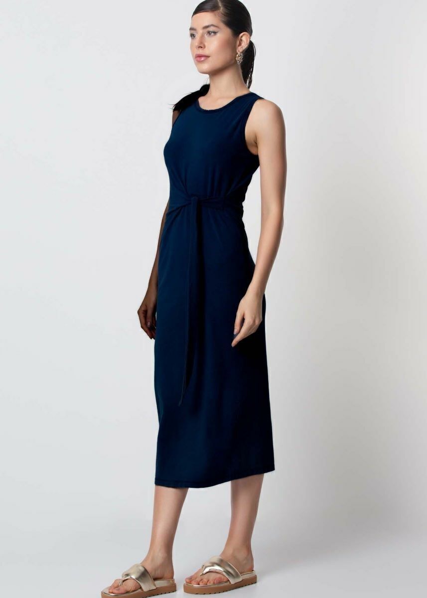 VESTIDO EM MALHA MIDI COM DETALHE EM AMARRAÇÃO NA CINTURA